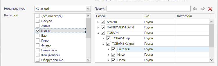 ● Категорії. Для вибору доступні товари, згруповані за категоріями.