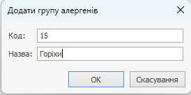 За замовчуванням у довіднику вже є набір алергенів, що часто зустрічаються. Але можна додати свої варіанти.