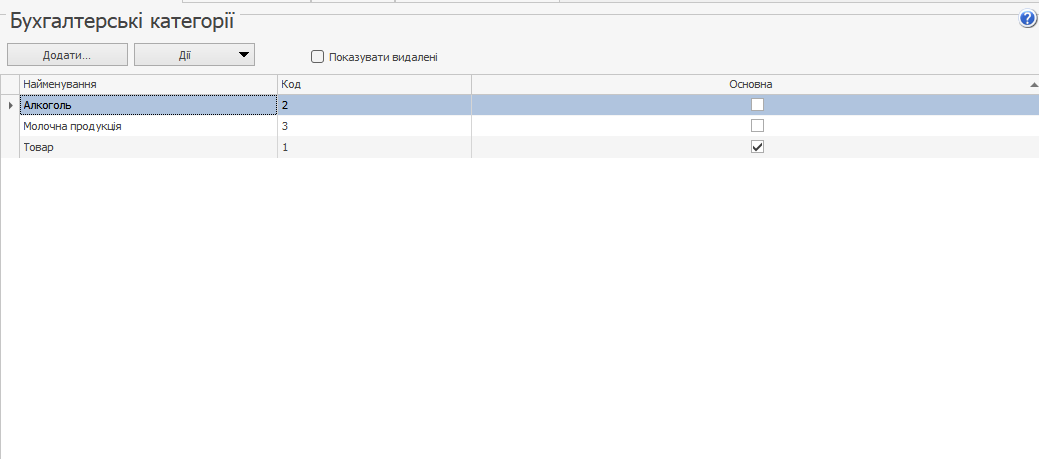 Якщо ви плануєте вивантажувати свої дані в сторонні системи, для кожного елемента номенклатури вкажіть бухгалтерську категорію. Щоб перенесення даних відбувалося без проблем, категорії обліку двох систем повинні збігатися.