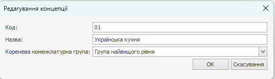 Призначити торговій точці певну концепцію можна в налаштуваннях торгового підприємства. Дане призначення не обмежить продаж страв на цій точці тільки стравами зазначеної концепції.