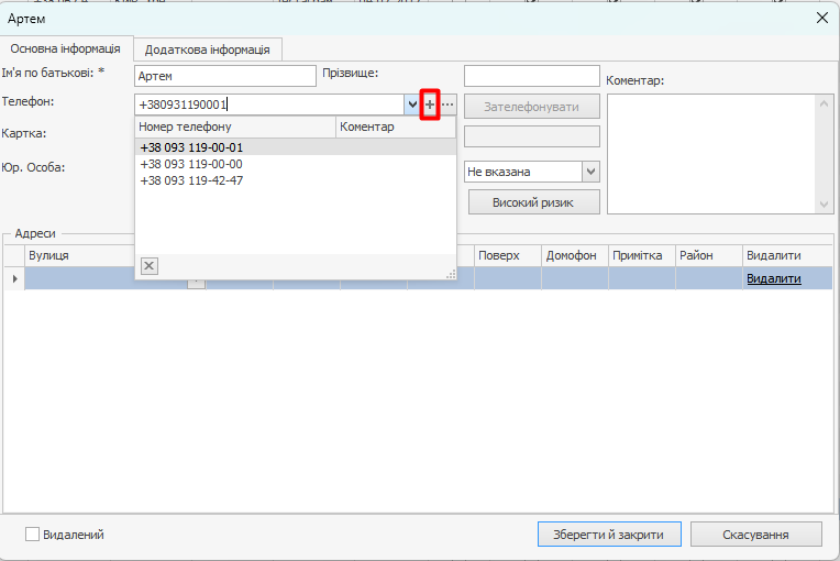Щоб додати новий номер, у полі Телефон натисніть кнопку