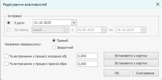 Значення % втрат ви можете підставити з налаштувань, заданих у картці товару (на вкладці Додаткова інформація – % втрат). Для цього натисніть кнопку Встановити з картки.