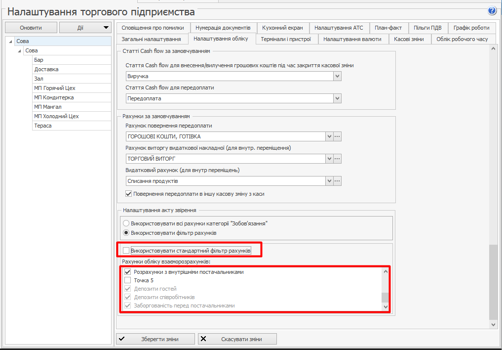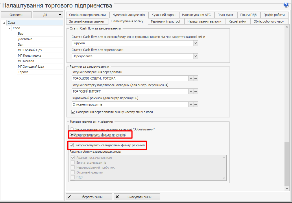 - використовувати фільтр за замовчуванням, для цього поставте галочку Використовувати стандартний фільтр рахунків.