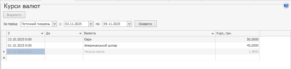 У цьому довіднику ви можете задати курси додаткових валют до основної.