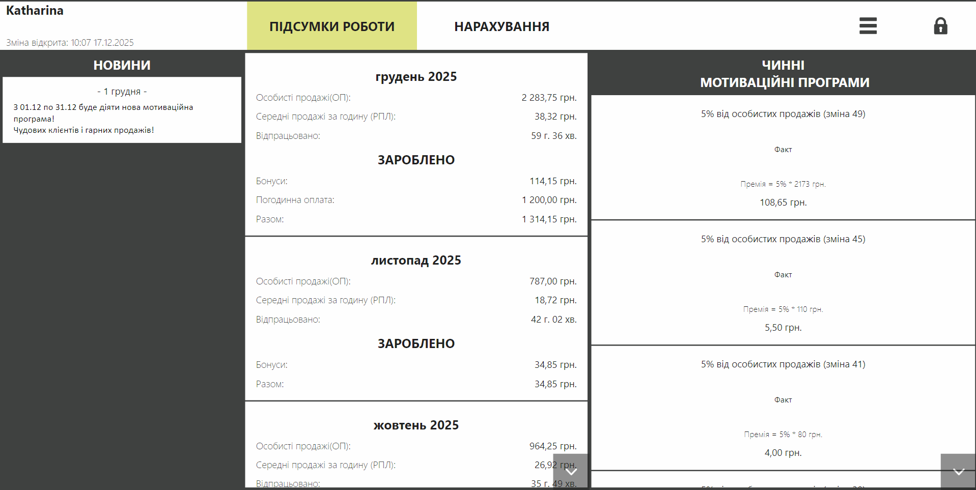 Співробітники можуть отримати важливу інформацію зі стрічки новин. Повідомлення формуються індивідуально для конкретних співробітників або посад. Це може бути інформація про мотиваційні програми, плани продажів, розклад роботи співробітників та інша службова інформація.