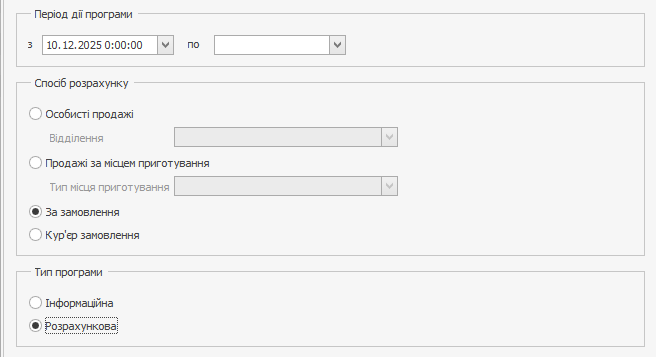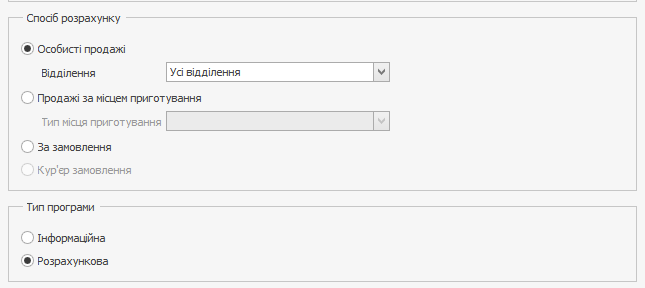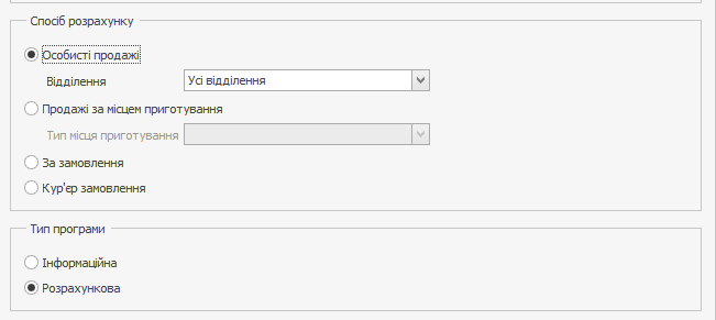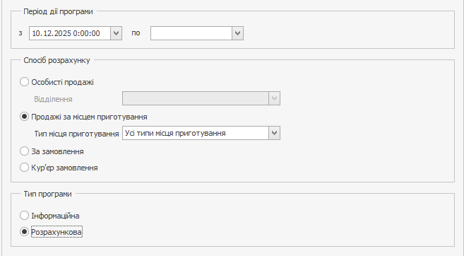 На вкладці Мотиваційна програма в блоці Спосіб розрахунку виберіть пункт Продажі за місцем приготування.