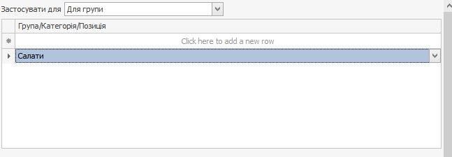 На вкладці Обмеження вкажіть групу, категорію або позицію, на яку поширюється дія програми.