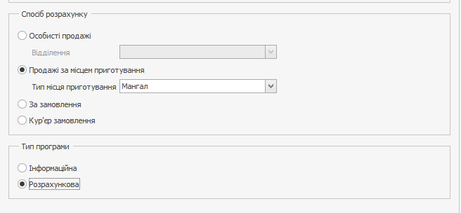 На вкладці Мотиваційна програма в якості способу розрахунку виберіть Продажі за типом місця приготування. Зі списку типів місця приготування виберіть потрібний, наприклад, мангал.