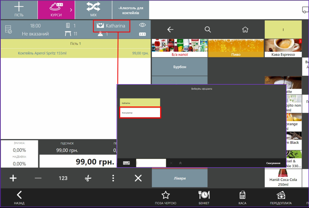 Замовлення у клієнта може прийняти будь-який офіціант. Але щоб консумант отримав премію, після відкриття замовлення вкажіть його як офіціанта.