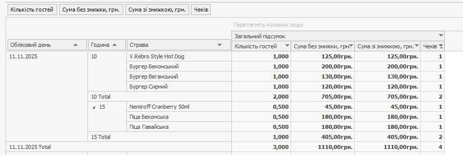 Цей звіт можна отримати з існуючого звіту про погодинний виторг.
