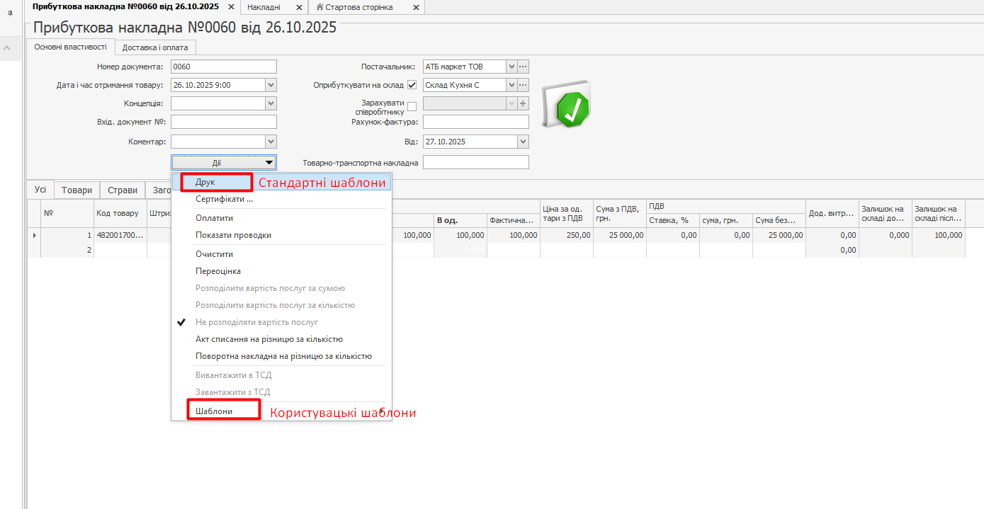 Шаблони друкованих форм бувають стандартні та користувацькі.