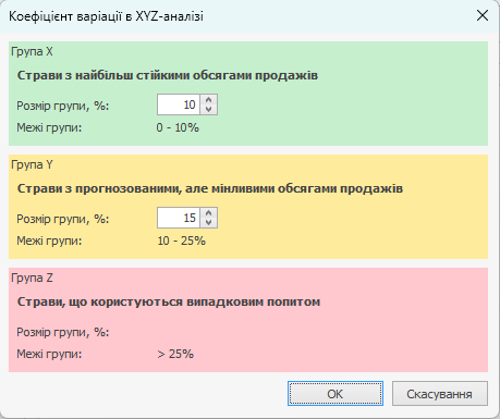у полі Коефіцієнт варіації в XYZ-аналізі.