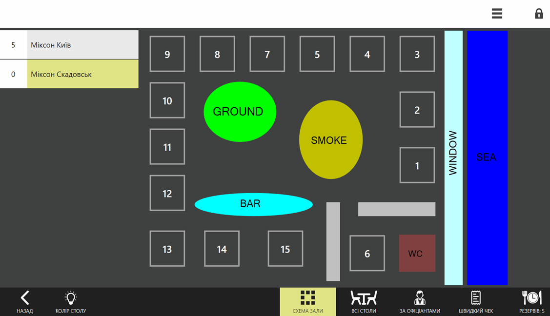 Інформацію про зареєстровані в Syrve Бенкетах та Резервах (БР) ви можете побачити як у списку, так і на схемі зали.