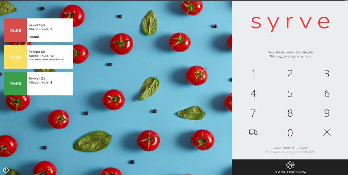 Повідомлення про майбутні банкети та бронювання на поточний день відображаються на сторінці входу у вигляді різнокольорових карток: