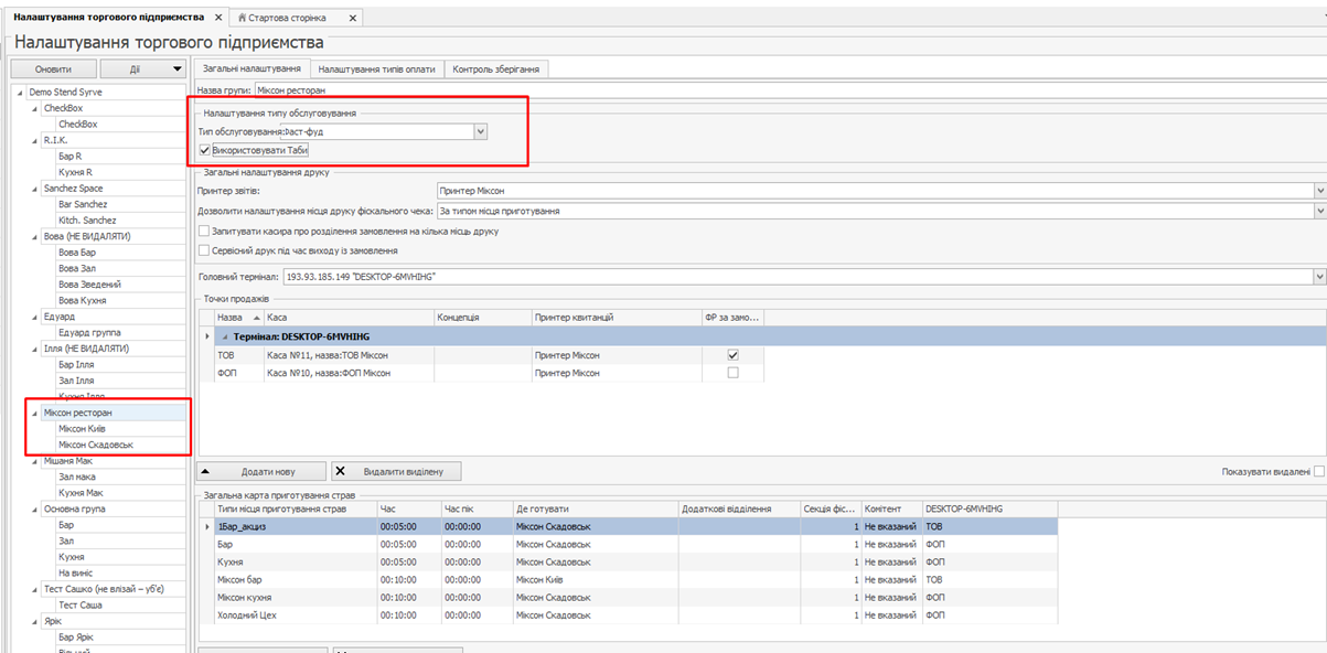 Замовлення та таби синхронізуються між терміналами лише в межах групи та лише в режимі використання табів.